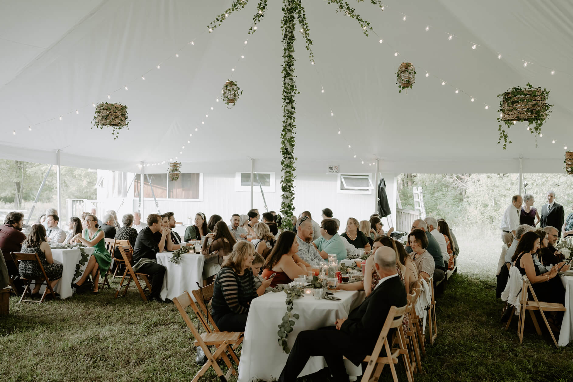 Our lakeside reception area includes four private cabin restrooms, as well as a spacious pavilion with a stunning view of the lake. The sprawling grassy area is ideal for setting up a tent and celebrating with loved ones.