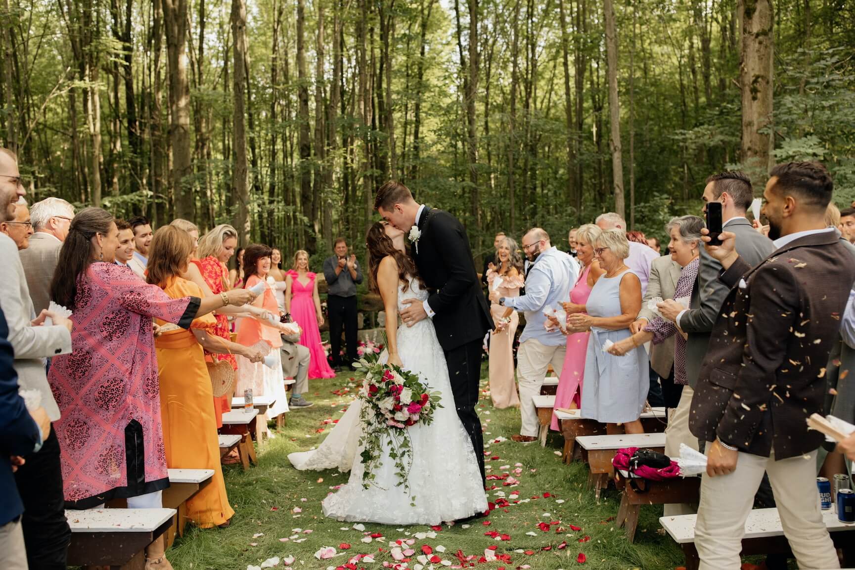 Exchange vows in our enchanting woods ceremony space behind the Lodge, just a short walk from the grand reception hall where you can continue the celebration.