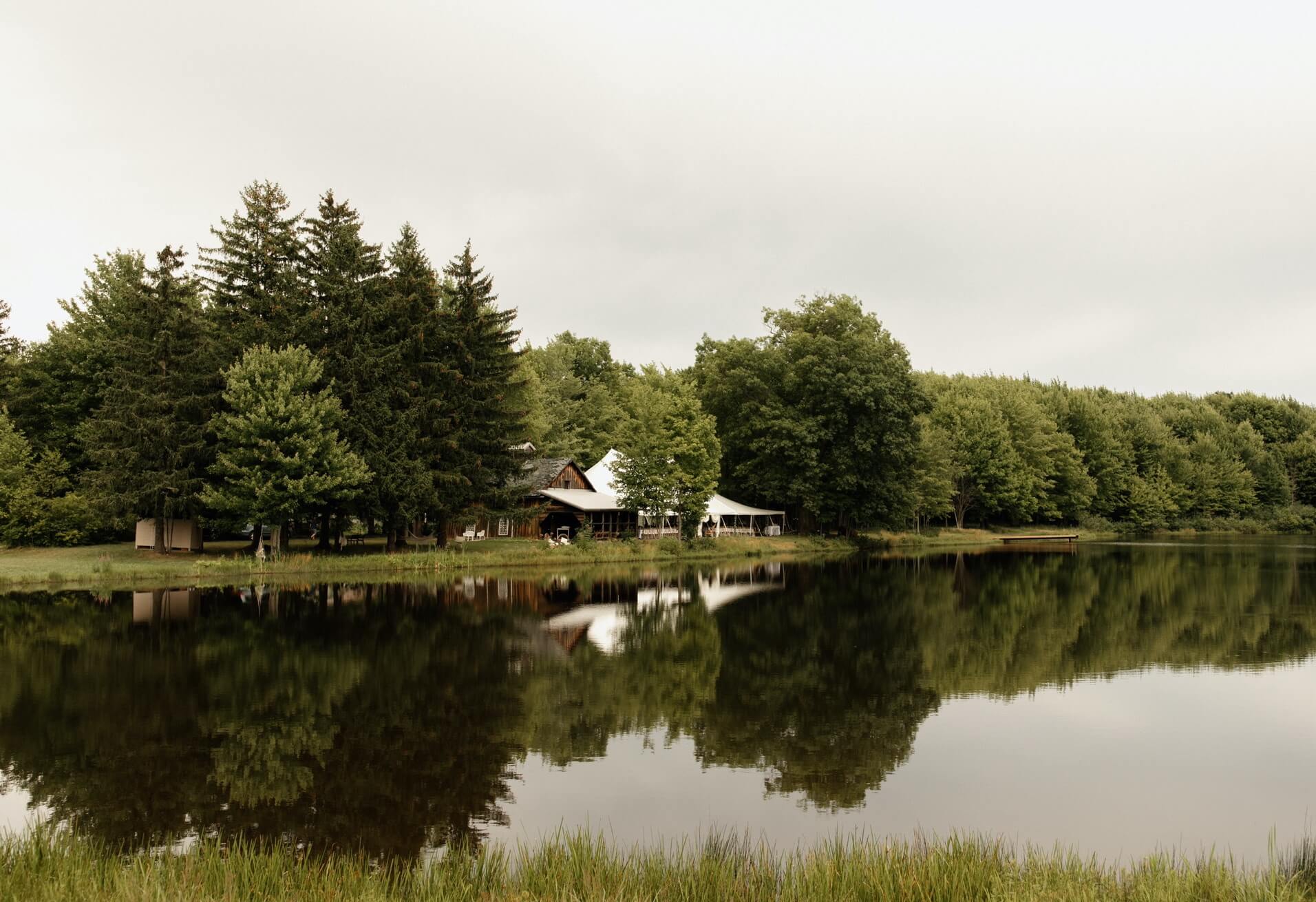 A 135 acre private estate featuring three outdoor ceremony spaces, an 8 acre lake, sugar house and themed sleeping cabins.