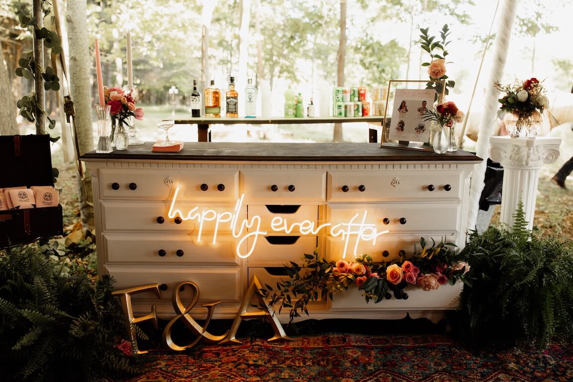 Have your reception in our pavilion or outdoors in a tent. With billowing fabric ceiling and the warm glow of string lights, guests will feel as though they’ve stepped into a whimsical garden party.